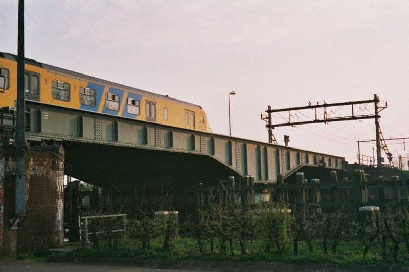De 3-sporige draaibrug over de Gouwe; links het dubbelspoor naar en van Gouda, rechts het enkelspoortje van de Gouwelijn. Na 1992 verleden tijd.