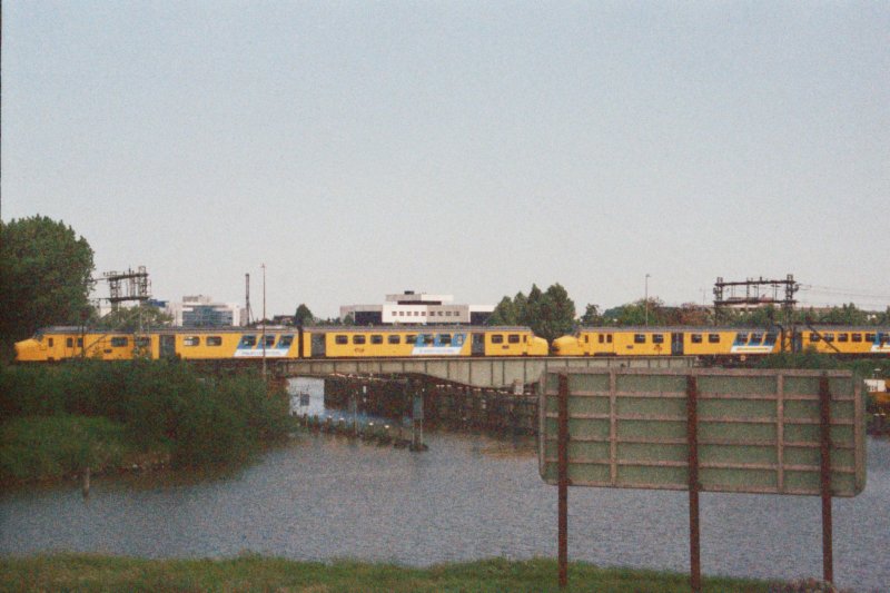 De oude draaibrug moet weer dicht om het treinverkeer te dienen. Waddinxveen, 12/6/88. [1600 ISO]