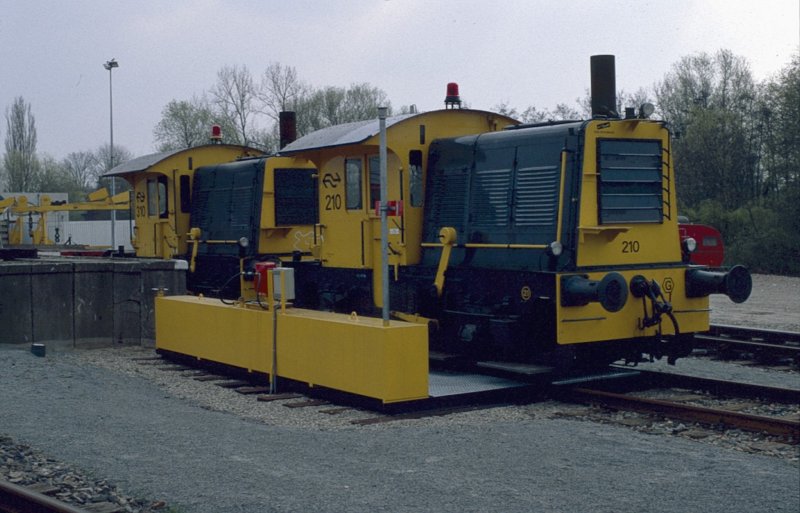 Locomotoren 210 en 310 in (stakings-)rust op het (kleine) emplacement.....