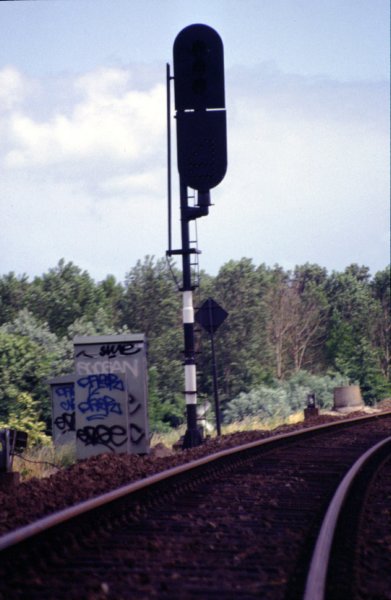 Dia vanaf het spoor van het Gouwelijntje; de seinen zijn gedoofd en de bovenleiding is inmiddels verdwenen. Rechts rijdt een koploper over de nieuwe hefbrug.