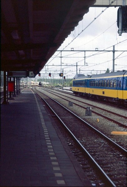 Rechts de sporen van het oude tracé welke nog in gebruik zijn vanuit en in de Haagse richting, alsmede t.b.v. het Gouwelijntje.