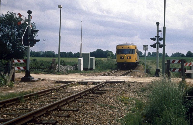 De eerste (beveiligde) overweg op NL bodem in Bocholtz wordt genaderd en voorbijgereden omstreeks 12.16 uur op weg naar haar eerste stop: Simpelveld.